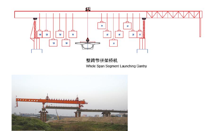 架橋機(jī)就是將預(yù)制好的梁片放置到預(yù)制好的橋墩上去的設(shè)備。架橋機(jī)屬于起重機(jī)范疇,因?yàn)槠渲饕δ苁菍⒘浩崞穑缓筮\(yùn)送到位置后放下。但其與一般意義上的起重機(jī)有很大的不同。其要求的條件苛刻,并且存在梁片上走行,或者叫縱移。架橋機(jī)分為架設(shè)公路橋,常規(guī)鐵路橋,客專鐵路橋等幾種。